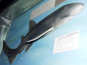 gran tiburón blanco: m.[魚]ホホジロザメ. grao: m.[荷揚げ用の]浜、荷揚げ浜、岸壁、港.
