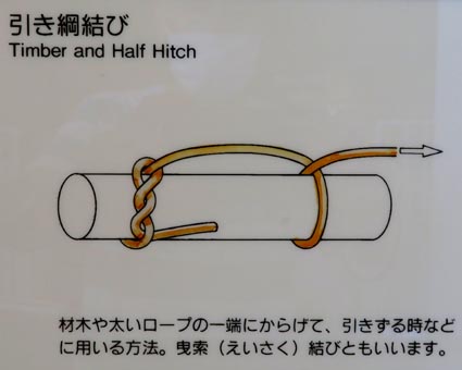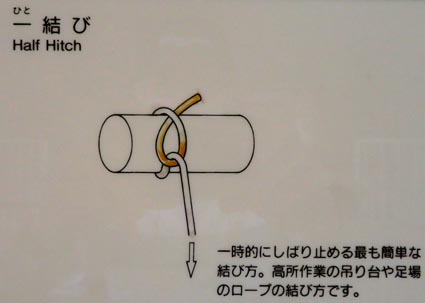 half hitch: ハーフヒッチ、半結索、半(片・一)結び[最も簡単なロープの止め方で、すぐほどくことができる].