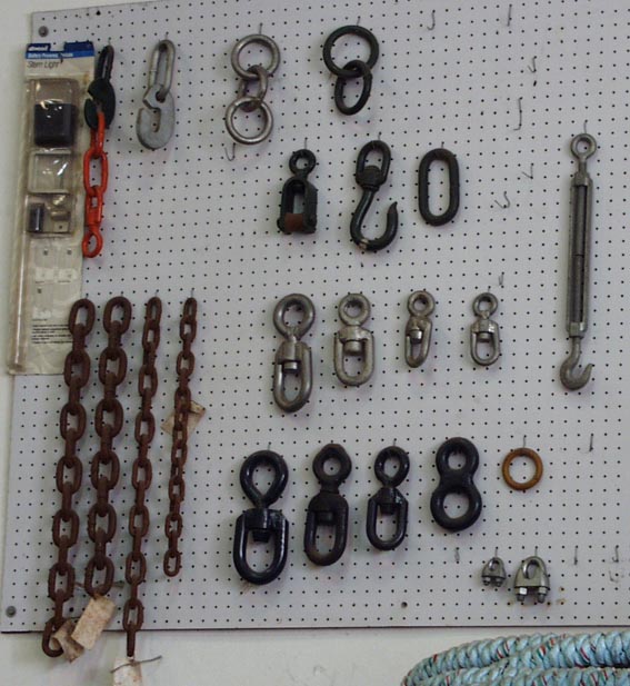 旋網の環吊り用チェーン]、[オッターボードの]腕鎖; 荷物鎖、荷物鎖索、手綱式チェーン [綱材・銅棒などの荷役用].
