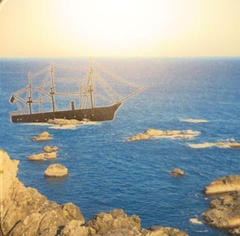 「トルコ記念館」内の小窓から、古くから海の難所として知られる遭難現場の「船甲羅」を間近に臨むことができる。