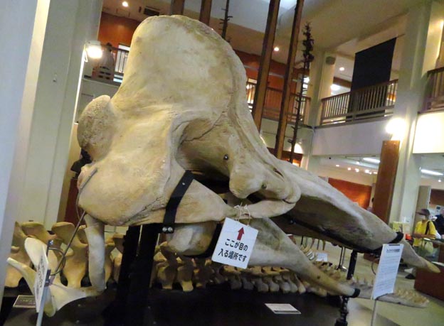 展示標本は、2009年に名古屋港に流れ着いた遺体(体長12メートルほど、体重20トンの若齢のオス)を同博物館が骨格標本にしたもの
