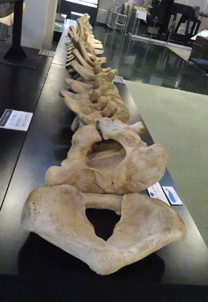 マッコウクジラは、ハクジラ(歯鯨)の仲間である。博物館の説明板によれば、成長するとオスの体長は18メートル、メスのそれは12メートル