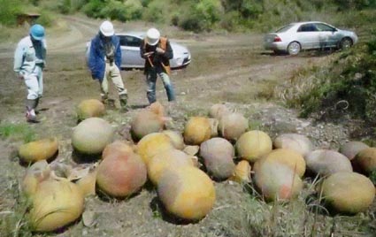 宮崎県都城市の砕石場の海成地層(約6600万年前~約2300万年前)から多くの球状コンクリーションが産出した(画像2,3)。