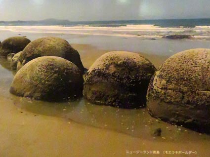 ジーランド南島東海岸のモエラキボールダーで産出したコンクリ―ション群は大きさ・形・量において世界的な規模で産出(画像4)。