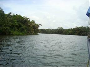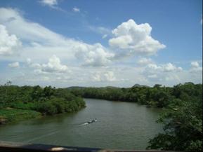 5.7 ククラ川 (Río Kukra) とサンタ・エリサ (Santa Elisa) ラマ・ケイ島の西方にククラ川の河口がある。ここから30キロ程度川を遡った。河口付近は川幅も広く100m程度あったが、 15キロ付近になると50m程度になる。途中、いくつかの集落があった。30キロ上流地点にはサンタ・エリサ(Santa Eliza)という集落が あった。農村開発庁(Instituto de Desarrollo Rural: IDR)のプロジェクトが入っており、その看板によると 住民の家族数は52家族。広々とした静かな集落だった。 この地点より上流は、水深が浅くなるためこの地点までの視察とした。さらに30キロ上流には、サン・フランシスコ(San Francisco)という 集落があるそうだ。