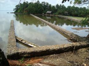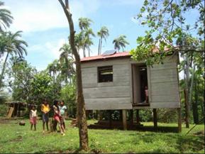 ブルーフィールズから南へ向かうと対岸に位置するエル・ブルッフ(El Bluff)というところの灯台へ電気を送る電線を 通過した。 ・ ラマ・ケイ島では500年前から住民が住んでいるそうだ。住民の話では人口は1,500名程度。上下水設備はなく井戸水。 電気は過去に整備されたが故障し、現在は自家発電をもつ2軒のみ電気を使用している。 島の中に、小学校、中学校、保健センター、教会があり島の規模としてはしっかりしている方だと同行した村落隊員が 言っていた。 ・ 住民はこの島に住み、農作物などの栽培は船に乗り移動し別の土地(本土側)でしているとのことだった。 墓地も島内になく、ミサが終わった遺体はプンタ・デ・デスペディーダ(別れの場所)から船に乗り、墓地へと送られる。 言語は、英語とミスキート、スペイン語だそうだ。幼い子供はスペイン語を理解できないようだった。
