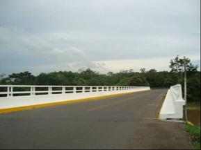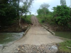 運河ルート1、2、3が通過することになっているラマ川の上流域、エル・コラル(El Coral)村周辺を視察した。地点①のラマ橋から ラマ川を観察すると、下流側に小さな滝がある。乾季は水量が減り川底の岩が露出する。川幅は50m程度と広い。 水深は不明。 また、付近の街道からラマ川方面を観察した(地点②)。街道からはラマ川は確認できなかった。 大きな隆起のないなだらかな低地がひろがっており、ラマ川が流れていると思われるところに谷が形成されている。 コローニア・エル・ラマ(Colonia El Rama)村方面に進み、吊橋がある地点③まで行くと、ラマ川は小さな川程度で ある。雨季である現在でも、馬で人が川を渡っていた。川幅20m程度、水深は1m程度。川の両側に車の通過跡があるため、 乾季には川の水がほぼなくなり車の通行が可能となることが推測される。 さらに進んだ地点④は、ラマ川の支流であるエル・ハビージョ川(Río Jabillo)との交点である。 その川幅は10m弱だったが、小さな橋が設置されている。橋梁上部の構造が、橋梁表面を川の水が覆うことが考慮された 形式になっているため、水量の増減による水深変化が激しいと推察する。
