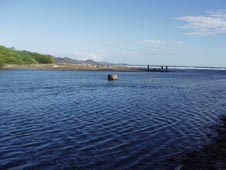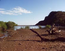 乾期に当たる現在での水嵩はほんの30cm(人間のひざあたり)程度である。土手の高さから見て最大水深は2-3mと推察される。