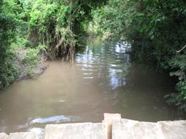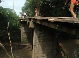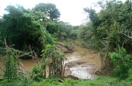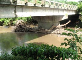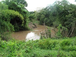 2. 木造の小橋。橋脚はコンクリート製である。 [拡大画像(x23204.jpg)](photographed by H. Kijima) 3. 同上。 [拡大画像(x23206.jpg)] 4. 上流側を見る。 [拡大画像(x23207.jpg)] 5. 同上。 [拡大画像(x23205.jpg)] 5.4 エル・サポーテ村近傍のオヤテ川(Rio Oyate) 1 2