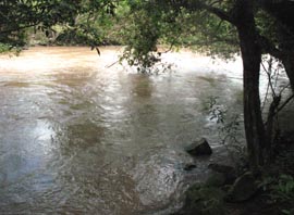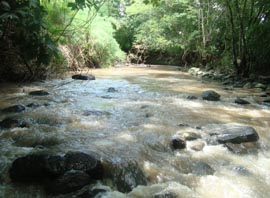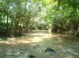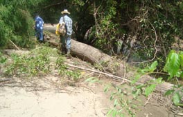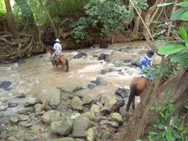 2. ごくわずかに上流の地点で撮影したもの。 [拡大画像(x23209.jpg)](Photographed by H. Kijima) 3. さらに数百メートル上流の地点。1週間前では川底が半分くらい露出していたが、今回は水嵩が倍化している。 この水嵩では馬で渡渉するのはほぼ不可能となろう。 [拡大画像(x23210.jpg)] 5.5 ラス・マリアス山(Loma Las Marias) 1 2![]()