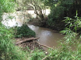 流れて来る。根っ子の水没状況から見て水嵩は1mほどである。1週間前に比べるとわずかに水嵩が増えている状況にある。