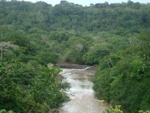 2. オヤテ川にかかる橋。橋下での川幅は30m程である。 [拡大画像(x23197.jpg)](photographed by H. Kijima)