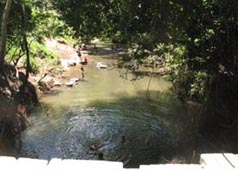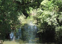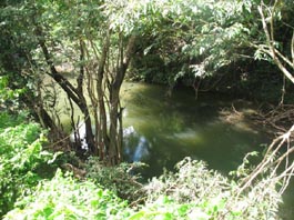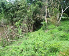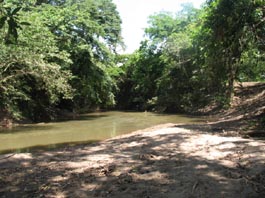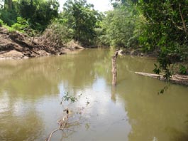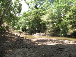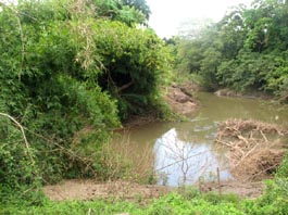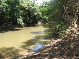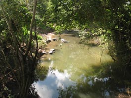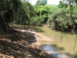 ・ 雨期の真っ最中であってもこの程度で、その水量は少ない。水は淀んでいて、ほとんど流れが見られない。