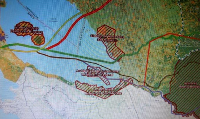 * ニカラグア行政府が下した決定によって(decisión ejectiva del Gobierno de Nicaragua)、サン・フアン川が絡むルートは