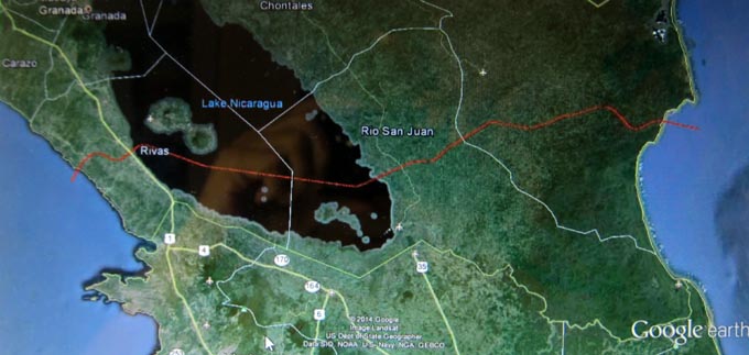 (山岳地帯である)、ニカラグア湖を横切るべきであること。
