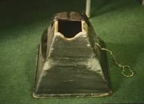 左手で櫂を扱い、右手で漁具を扱うので、箱眼鏡は口に咥えられる。そのために、使い込まれた箱眼鏡は、 咥える側が減っており、反対側は額で抑えるためにゴムを張ってある。