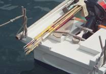 第 1 部 11 簡単な漁法 16 磯見・鉾突き 16-12 磯見・鉾突き( 2 ) 下関地方において、磯見は、漁期その他が漁業法規と漁協内の申し合わせによって制限され、従事者の老齢化に ともなって、限られた時期と限られた地点において、数隻の漁船がルーズな集団として岸の近くで操業している のを見かける。その漁船と装備を漁港で見かけることはほとんどなくなった。 1995年までに撮影した写真はファイル「磯見」に示した。