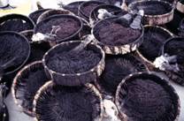 背景に見られる竹はボンデン用、木片は魚を入れる箱を組みたてる材料である。