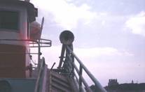 甲板上に立って、舷門から大きなマグロを引揚げるために、乾舷が著しく低い。右舷前方から風を受けながら、 船首楼のすぐ後の舷側にあるラインホーラで幹縄を揚げる。船橋は中央よりやや後方にある。これは、 揚縄中の断続する停止の間に、風圧によって縄の上に流されないためである。すなわち、停止中に風圧で流されても、 後の方が前の方よりも余計に流され、船首は縄の方向を向く。No.2に写っている船では、後半の水線上構造は 前半のそれよりも大きいので、このことが当てはまる。しかし、No.23とNo.29に写っている船では水線上構造が 大きく、したがって、風による圧流が大きくなり、水上線構造の前半と後半の大きさが近く、流されても 船首が縄の方に向きにくくなった。 船尾の甲板は写っていないが、No.23に示すように、船尾には特別の装置はまだ設置されてなく、 手作業による投縄のために十分な場所をとってあった。 船首楼甲板は、上から見ると左右対称的であるが、舷側は右側が前に切込んでいる。船首楼甲板の 下の影になる部分の右舷側よりやや内側にラインホーラがあり、それによって幹縄が揚げられる。 船首楼の右舷舷側の切込みの前端近くのブルワークトップには、幹縄が通る3方向プーリが見られる。 ラインホーラの左に続く台はスローコンベヤで、コイルした幹縄がこの上を右から左にゆっくりと送られる。 幹縄は左舷側の近くで方向を変え、左舷漁船登録番号の少し前にある(白い)ラッパからパイプ (赤い帯と漁船登録番号の間を走る。上側が空いているので黒く写っている)を通して、左舷に沿って 船尾に送られる。 枝縄は、3方向プーリとラインホーラの間で幹縄からはずされ、魚がかかっていない場合は手かNo.9に 示す枝縄巻取機でコイルされる。 魚がかかっている場合は右舷船橋のやや前の舷門から上げられる。舷門は、この写真では幹縄を後に 送るシステムの受け口と重なっているので分かりにくい。 コイルされた枝縄は左舷に沿って走るベルトコンベヤによって船尾に送られる。