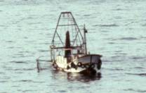 第 2 部 15 底曳網 15 明石における底曳網漁船 明石海峡から神戸沖にかけて、船尾に高い櫓を組んだ漁船を見かける。この船は次の2点で特殊である。 その1つは、曳索の巻取り法であり、もう1つは離底曳き―中層トロールでなく、網の重量は海底を曳く グランドロープにもたせ、何らかの方法で網裾を海底から離して曳く―をする可能性である。 同じように船体の割りには大きな櫓を船尾に組んだ底曳網漁船は、瀬戸内海北岸に沿って見られる。 しかし、それらは機関室の後の甲板がもっと広く、曳索は機関室の横にあるリールか船尾にあるドラムに 袖網とともに捲くという普通の操業法を取り、着底曳きを行う。 一部の船では、機関室より後部の作業ができる甲板が狭いので、曳索を捲き込むドラムを機関室より前に 据え付け、船尾から上がる曳索は、操舵室の上を越えてそのドラムに捲き込まれる。 離底曳きに関して、このようにグランドロープを着底させ、フットロープを海底から浮かせて曳く可能性は、 1960年代前半にベーリング海においてソ連の大型トロール船によって行われていた可能性は指摘されている。 それと同様の考え方の曳網法が、沿岸の小型船でも行われていたことは特記に値する。
