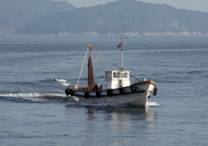 これから後の3枚の写真は、広島県中部 で撮影したものである。吉和の両側において同じような特徴を 備えた底曳船が見られたので参考のために示した。