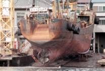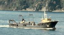 冷凍スリミの普及に伴い、練製品の原料の需要はほとんどなくなり、漁獲の主な対象は惣菜用の魚に変わった。 No.4からNo.6に示した船とよく似ているが、それらに比べて小型で、鳥居型マストが2基ある。 後の鳥居型マストに下がっている黒く長い楕円のものは、空気フェンダーである。漁獲量が減少したので、 航海日数が延び、漁獲物の鮮度低下を防ぐことと、漁獲物の現金化のために、洋上で接舷して漁獲物を転載 することが増えたことを意味する。 元来の以西底曳網漁船には、その起源から、阿波型と出雲型があった。No.4からNo.8までに示した船は、 大手水産会社が所有し、半年近くを北洋の独航船として稼動する。No.13からNo.18までに示した船は、 周年東シナ海においてこの漁業を続ける。これらの間には多くの点において、大きな違いが生じた。 いずれにしても、この漁業が盛んであった頃と背景が変わり、従事する漁船は、原型に近い船と全く違った 型に変わった。