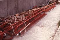 幅の広い桁は船尾に櫓を組んで扱われる。この漁業は漁期が限られるので、漁期の間だけ櫓が仮設されるか、 櫓を利用した他の型の(底曳)漁業に使われる。