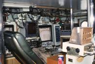 ここは、通常航海用と見張用で、漁労作業に関する操船は船橋後面にあるコンソルで行われる。