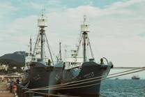 第 4 部 50 その他 12 捕鯨船団(2000年) 南氷洋捕鯨は、第2次世界大戦後の食糧難時代に、日本にとって動物タンパク質を確保する大切な産業であり、 大手水産会社にとっても採算性のよい最大の漁業部門であった。しかし、その後国際的に商業捕鯨は全面的に 禁止され、現在の日本では調査捕鯨として、その技術を残すだけとなった。このファイルはその船団の2000年 における情況を残すためである。