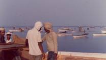 No.7 遠景はboat、手前はkatira No.8 仮泊中のboat (Jizan) 昼間はサンゴ礁の上で仮泊する。夜間にサンゴ礁外縁で魚を集めて釣るための 石油加圧ランプが見られる。 No.9 Jiddahの北約100kmにある Ras Thualの船溜り boat、katira、houriが見られる。一部boatはDieselの 船内据え付け機関を備える。