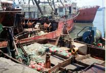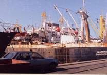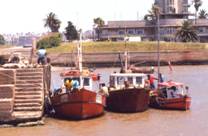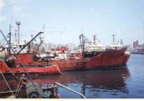 Uruguay(特にその首都であるMonte-video)は、各国の200浬外に残されたトロール漁場とイカ釣漁場に近い ことと、外貨の扱い等のために、かっては年間数百隻の日本漁船(主にトロール船・イカ釣船及びマグロ延縄船) が入港した。Uruguayに関するこれらの条件は、他の漁業国の漁船に関しても当てはまり、多数の外国漁船が当時 でも入港していた。 Uruguay船籍の漁船は船体を赤く塗装しているので分かるが、外国から中古漁船を輸入して使うので、構造には 建造された国の特徴が残っている。Montevideoに係船されている船を見ると、漁業先進国が次々に新船を作り、 そのためにできた廃船(まだ十分に使える)を購入し、かなりあとまで使っていることが分かる。 それらの他に、東欧諸国の漁船や韓国の漁船が多数係船してあった。それらの大部分はトロール船であり、一部は 自動イカ釣機を装備したトロール船とマグロ延縄船であった。トロール船の漁獲物は近代設備で加工され、主に ヨーロッパに輸出される。小型漁船の漁獲物は地元で消費される。