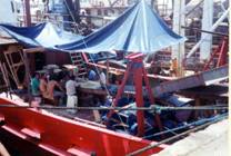 No.2-54 No.2-50−No.2-54 ここの漁船は他で見られるものと全く船型が異なり、操舵室があり、推進は船内に据え 付けた機関による。しかし、動力によるネットホーラーは付いていない。No.2-53は動力滑車のように見えるが、 動力はない。
