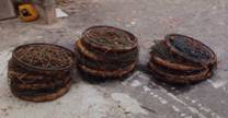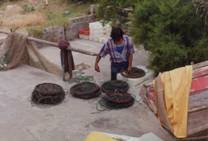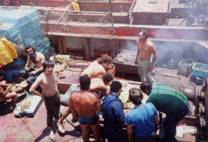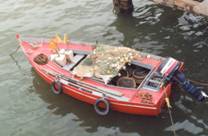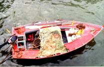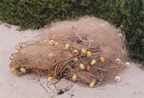No.2-11 刺網は主要漁法の1つであり、このようにして運ばれる。刺網をこのようにシートで包んで運ぶことは 日本でも見られる。 No.2-12 延縄が写っている何枚かの写真では鉢の下に黒い輪があり、重ねやすいようになっている。