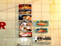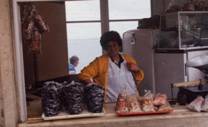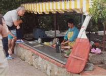 La Plata河沿いには漁師の家で家族が魚を売るのは、小型漁船のNo.3-17、No.3-25、No.3-27、No.3-28に示した。 その他にも種々の型で魚を売られ、少なくともMontevideoでは魚を食べる習慣は普及していると考えられる。 No.3-18 Montevideoの旧市内の街角では、このような型で魚を売っている。客の求めに応じて魚をフイレー におろしている。 No.3-19−No.3-22 Punta del Esteの漁港ある魚屋 看板にはPescaderiaとMarisqueriaが書いてある。 Pescaderiaとは魚屋、Marisqueriaとは貝類・エビ類等を売る店という意味である。 No.3-20 ブース6では釣餌も扱う。これはPunta del Esteが観光地であることと関係があるのだろう。 No.3-22 ブース7と8で扱っている値段の表で、貝類・エビ・タコ等のように魚以外の品数が多い。 No.3-23 道端の魚屋で、近くの漁師が 漁獲した魚を売る。したがって、当日扱っている魚の名前を書いてある。主に海産の底魚類を扱う。 No.3-24−No.3-25 公園で見られた移動式の魚の出店。No.3-26はそこで扱っている魚。海産底魚類を扱う。 No.3-27−No.3-28 La Plata河沿いの公園にある魚屋