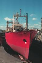 No.3 もう一つの型は北転船である。合弁会社を作り、1社が1隻を運行する型で稼動している。いずれも Puerto Deseadoに出入する船の写真から抜出した。 No.4からNo.6までは典型的な北転船の型をしている。 Puerto Deseadoはパタゴニア砂漠の縁にあり、娯楽設備がほとんどない。また、アルゼンティンは日本に比べて 人件費が安い。北転船の乗組員は過去の高賃金に馴れているので、小規模の合弁会社では日本人乗組員に対して その差額をどうしているか、日本人船員にとっては、種々の点においてかなり厳しい生活だろう。