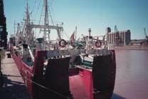 No.14 No.15からNo.19までは、Buenos Airesの岸壁に係船されていた旧日本船の写真である。船番は1人ずつ残っていたが、 会社の人から話を聞いて欲しいというだけで、会社の所在を聞いても答えは得られなかったし、何も話たがらなかった。 そこはドックと呼ばれる地区で、市の中心に近く、普通は漁船を係船しない場所である。情況は全く分からないが、 行詰まっているらしいことだけは察しられた。