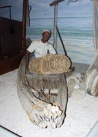 [拡大画像: x14955.jpg][拡大画像: x14983.jpg/博物館内ジオラマ展示の一部: 椰子の舟に乗った漁師がトラップ籠のようなものを