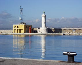 マルセイユ港の白亜の小灯台とレッドカラーの超ミニ灯台-1
