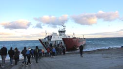 マゼラン海峡を吹きすさんだ西寄りの強風は少しは和らぎ、ようやくフェリーが対岸からやって来た。長距離路線バス内でほぼ