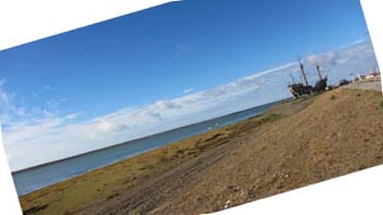 画像の木造帆船は、そのパタゴニアの大西洋岸沿いにあるプエルト・サン・フリアン (Puerto San Juliánプエルト。プエルトとは
