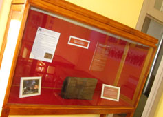 陳列棚の表題は、⌈ナオ船サンティアゴ号の木片 Fragmento de Madero de la "Nao Santiago"⌋。その棚の