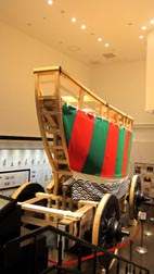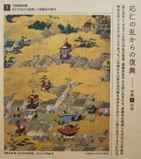 4. 狩野永徳筆「洛中洛外図屏風」(米沢市上杉博物館所蔵)に描かれた船鉾(絵右下)。 [拡大画像: x26118.jpg][画像1~4のいずれも 大船鉾ショール―ムでの展示]