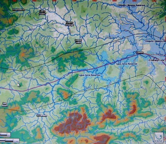 即ち、ニカラグア領土が対岸から少し食い込んでいる)。縮尺5万分の1の地図をベースにする立体図であれば、