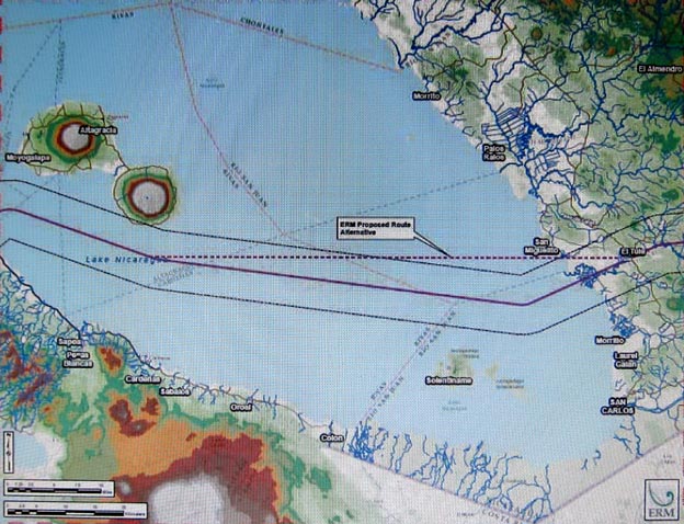 ニカラグア湖の区間)、閘門、人工湖を思い描くための3枚の地図