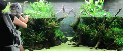 1![]() 1. 2つの水槽のうちの一つ「原生林の構図」。 [拡大画像: x26297.jpg]
