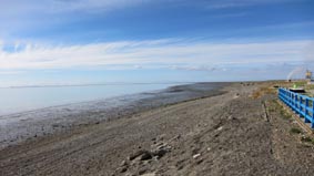 [随想] 画像はアルゼンチン南部地域のパタゴニアのほぼ最南端に位置する町リオ・ガジェーゴスの旧港での風景である (撮影: 2014年3月15日)。 1985年の南半球の夏季に訪れた時に脳裏に焼きつけられたある一つの風景がある。時々フラッシュバックすることもあり、気にかかっていた。 29年後の今回の旅でそれが何であったかをようやく知りえた。 ⌈1985年の夏、赴任地の商・漁・軍港都市のマル・デル・プラタ (首都ブエノス・アイレスから南東約400km余りの、 大西洋岸沿いの都市) から大西洋岸沿いに約2000kmを5日ほどかけて車で南下した。国道沿いのいくつかの自然探勝地を道草 しながらのんびりと旅した。テント、毛布、簡易のテーブル・イス、炊飯器、米・調味料などの食料品、その他諸々の生活用品 一式をワゴン車に詰め込んだ。車のルーフも山積みにして、家族4人 (1歳と6歳の乳幼児を含む) で出かけた。 パタゴニアの風景はさすがにどこを見ても荒漠たるものでいかにも殺風景に見えた。その大自然の荒々しさに何となく威圧感を感じていた。 そろそろ荒漠風景から脱してアンデス山麓の森と湖と氷河に覆われた別空間に身を置きたいという思いが、道中徐々に強くなるばかり であった。ただ、大西洋に向けてヒョウタンのような形で大きく突き出たバルデス半島の自然は感動的であった。 特にロボ・マリーノ(アザラシ)などの海洋哺乳動物を身近に観察することができた。また、 半島から4、5百㎞南のプンタ・トンボでは、何十万羽ものマゼラン・ペンギンとその営巣地をごく至近距離で眺めることができた。