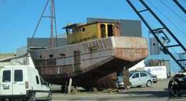 マル・デル・プラタ港の海&船風景 (その 1)/修理中の沿岸漁船