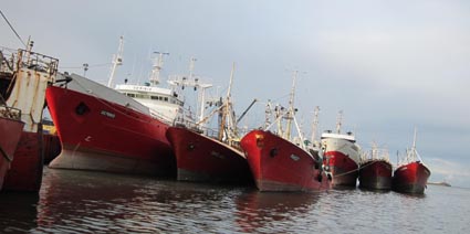 ![]() 4 ![]() 4. 船体が全面的に赤く塗られた大小の近海漁船。通常、1週間ほどの操業を行なう。パタゴニア方面では更に大型の4~5000トン クラスの遠洋漁船が従事する。 [拡大画像: x26408.jpg] |