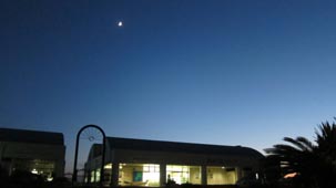 2![]() 2. 午后5時頃に陽が落ち、透き通るようなブルースカイとなる。秋の月が博物館上に光り輝く。 [拡大画像: x26502.jpg] |