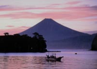 1 2![]() 1. 健康の森から、戸田港のある湾 (手前) と御浜 (みはま) の砂洲越しに、駿河湾に浮かぶかのような富士山の絶景を切り撮った写真 (出典:戸田港・船乗り場/バス停の観光案内ポスター)。砂州の先端には「沼津市戸田造船郷土資料博物館・駿河湾深海生物館」(下図参照)。 [拡大画像: x26511.jpg] 2. 同じく、砂洲と湾口越しに富士山を切り撮った写真(出典:同上)。 [拡大画像: x26512.jpg]